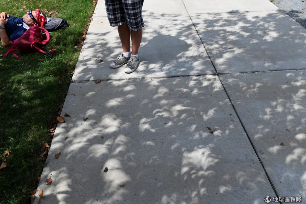 路透社因為日蝕的緣故,陽光透過大樹的縫隙,也呈現出彎月似的模樣。
