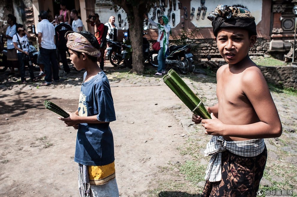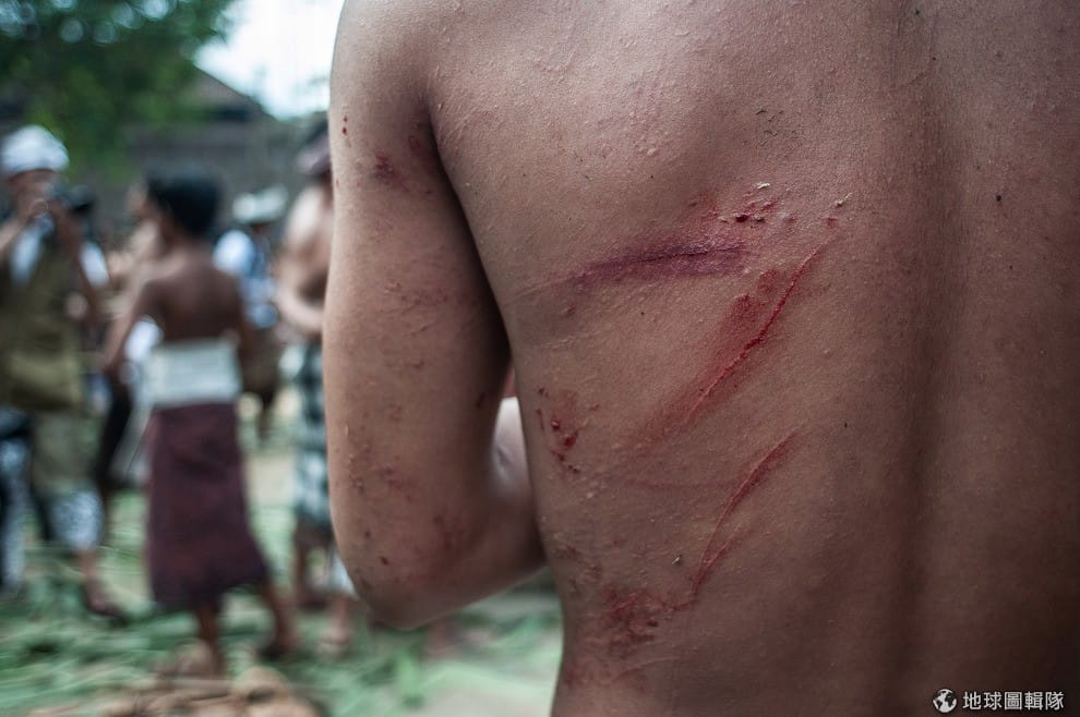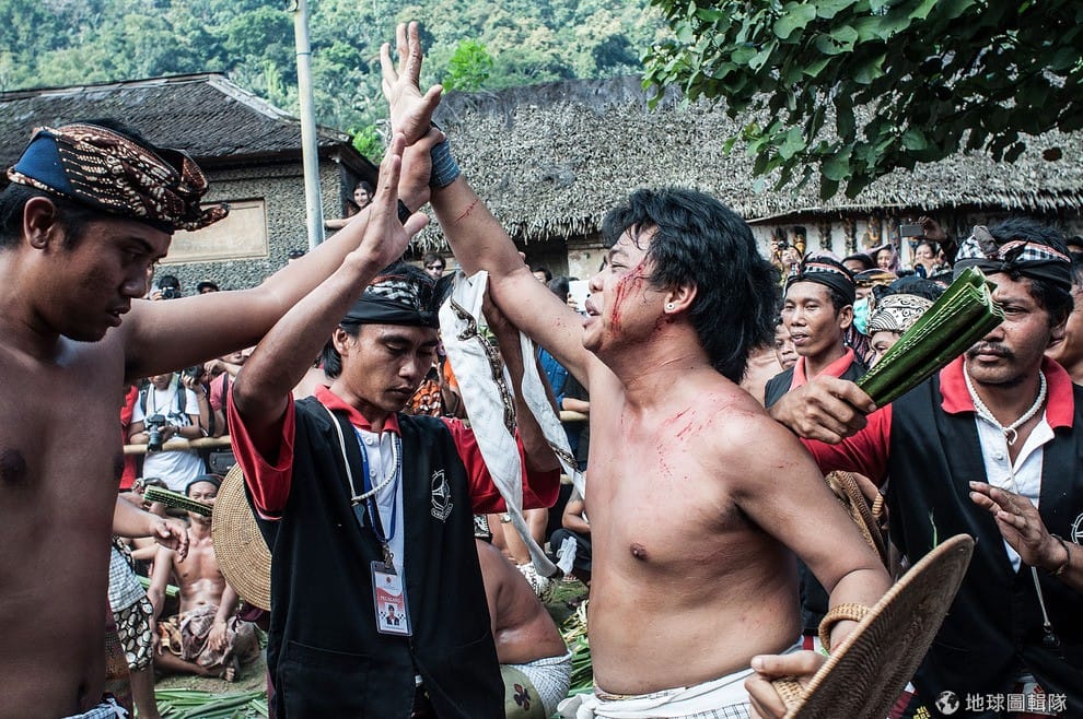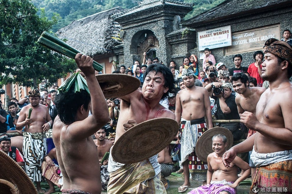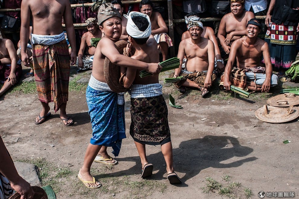 英國《網路郵報》25號報導,這幾天,印尼峇厘島上的坦迦南(Tenganan)地區特別熱鬧,當地村內的男人們全換穿上傳統服飾齊聚在戶外廣場上準備大戰一番,原因無他,因為當地年度的重要宗教月又來到,為了向印度戰神致意,男人們全都一手拿帶刺植物、另手拿藤製盾牌,互相對戰,氣氛熱烈。