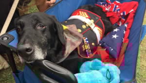 無法行動的Cena身穿藍色軍服,除了牠最好的朋友Jeff還有超過百位從各地來的民眾來送牠最後一程。取自: Wood TV