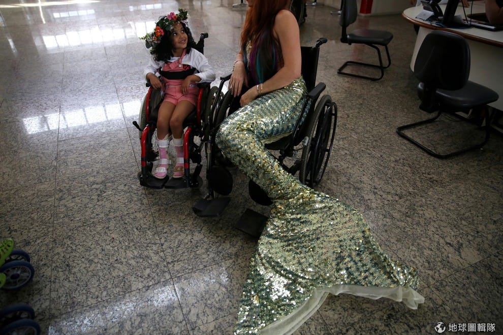 路透社在位於巴西聖保羅(Sao Paulo)的身心障礙孩童保護協會,凱坦公開她扮演美人魚的道具,珍珠、花圈、閃亮的尾巴是最重要的關鍵。