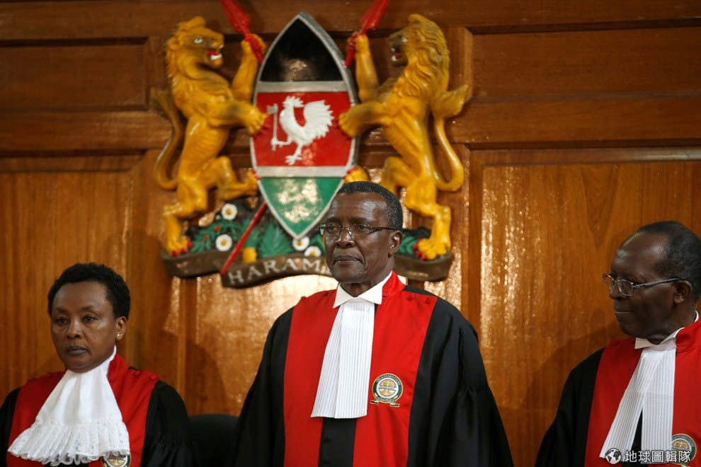 1號這天,肯亞最高法院大法官馬拉加(圖中)宣布,8月8日的肯亞總統大選結果無效,並要求選委會在 60天內重選,創下整個非洲首次有法院宣布選舉無效的紀錄。