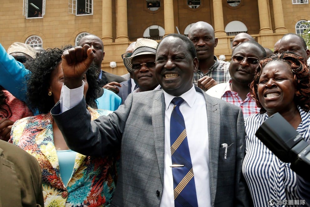 肯亞反對黨領袖歐丁嘉的支持者開心地手舞足蹈,慶祝上個月的總統大選結果無效,他們在下個月還能再重選一次,歐丁嘉仍有當選的可能。