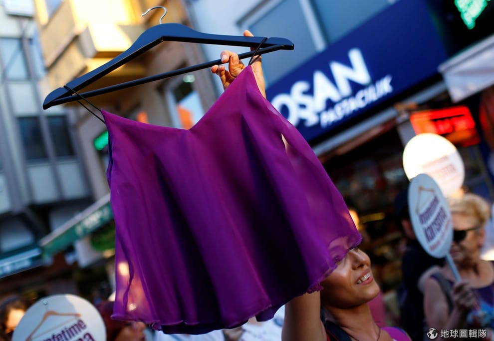 衣服是一種表達自己的方式,而非需要服膺生理性別的一種選擇。圖為今年七月,土耳其女權人士在伊斯坦堡抗議男性要她們穿得保守點。
