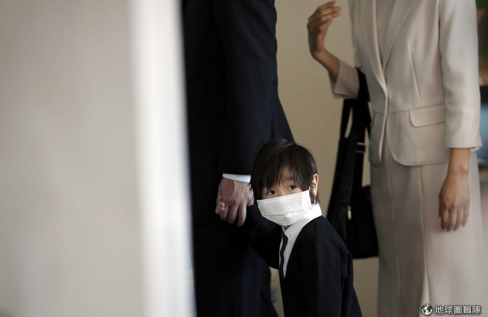 2011年在福島,一名小男孩在父母的陪同下準備去參加開學式。為了避免讓其他人發現家裡是單親,有些人會透過「租爸媽」來解套。