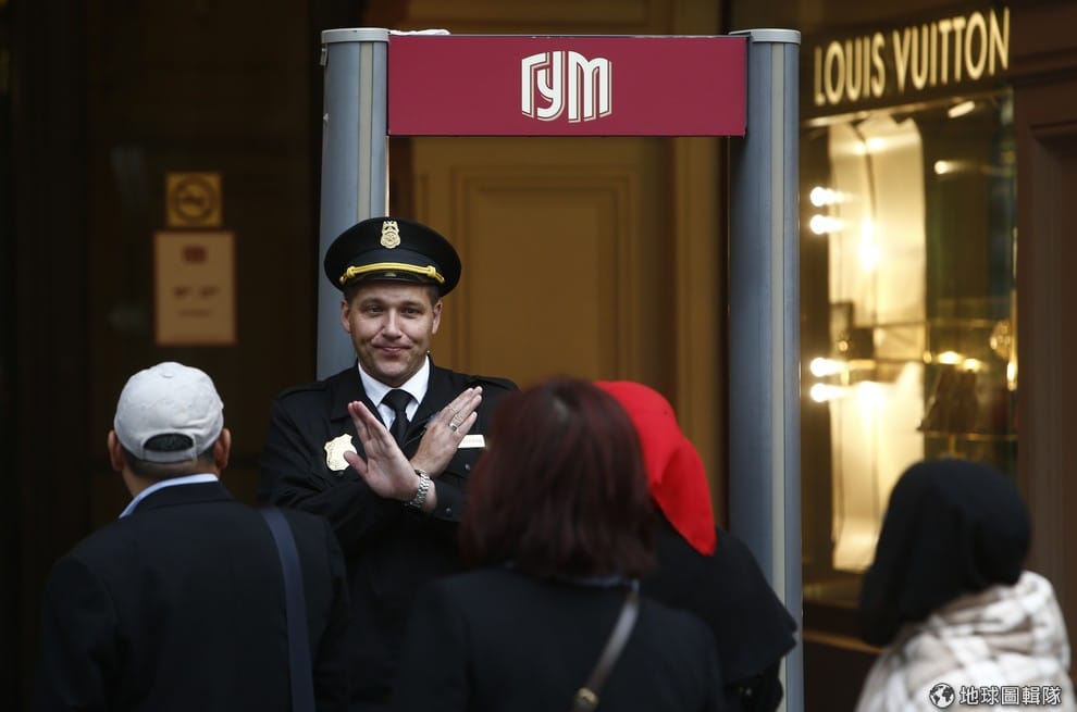 在莫斯科最大的國家百貨商場(GUM),一名百貨公司的保全人員神色客氣地阻止顧客進入,因為裡頭正在進行炸彈檢查。
