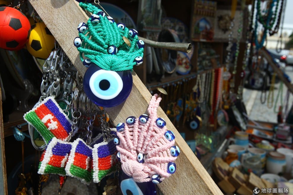 gettyimages紀念品店擺滿了可以避邪的「邪眼」(土耳其語為Nazar Boncuğu或可稱惡魔之眼),這種藍白同心圓組成的圖案,據說有著避開詛咒的神秘力量。