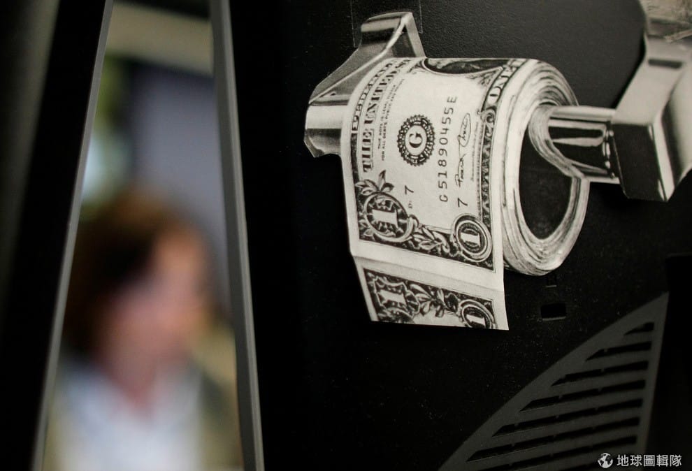 圖為印有一美元紙鈔圖樣的衛生紙。擔心不法人士用大鈔洗錢,許多國家都已經停止發行大面額的鈔票。
