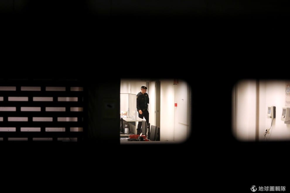 地球圖輯隊隔著圍籬,攝影師拍下在財政部搜索物品的西班牙警察。