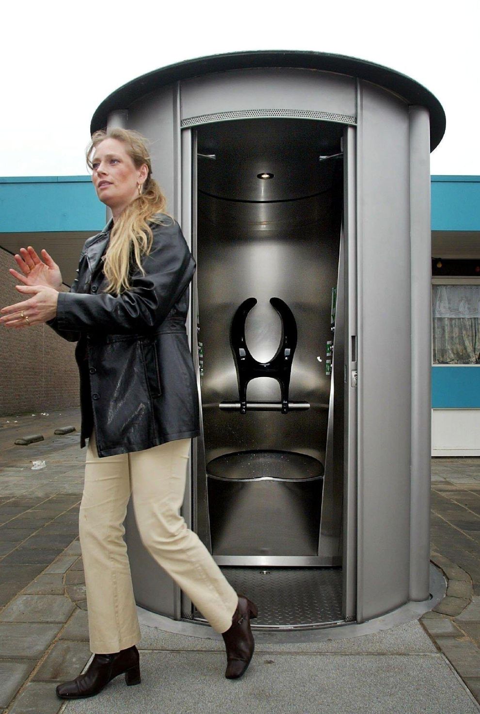 在荷蘭鹿特丹,一名女子從專門提供給女性的公廁中走出。