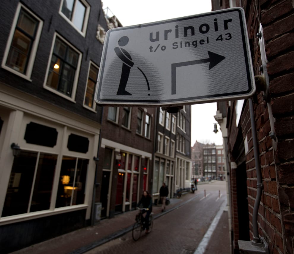 在阿姆斯特丹街頭,可以看到專供男性上廁所的公共小便斗,然而要找到公共女廁一點也不容易。