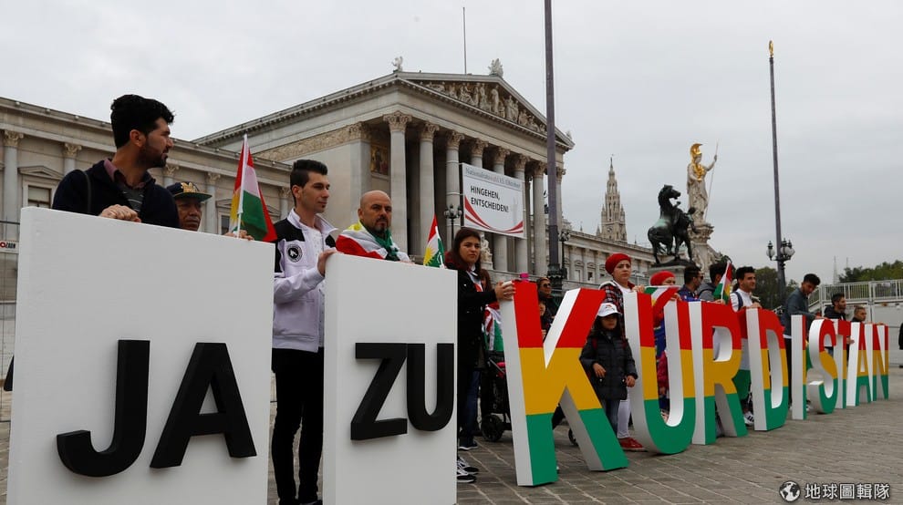 世界各地的庫德人也團結一心,舉行各式各樣的活動支持伊拉克庫德斯坦自治區獨立。圖為在奧地利維也納支持獨立公投的庫德人。