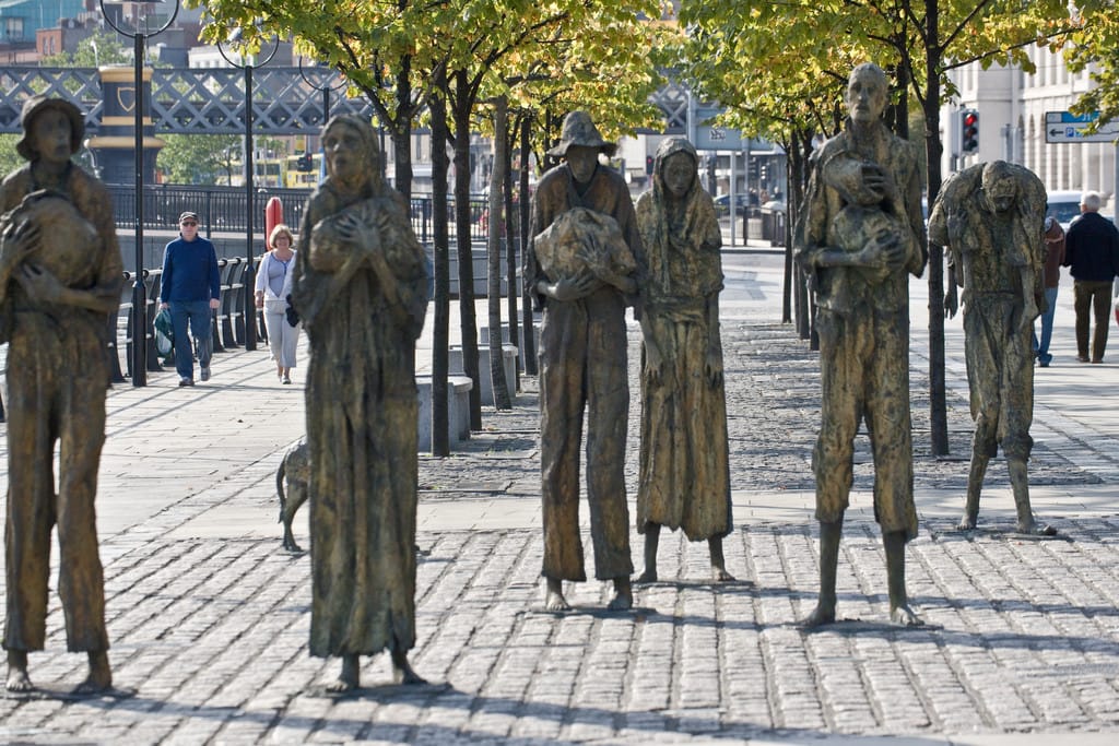 圖為位在愛爾蘭都柏林的飢荒雕像,藉此紀念在 1845年發生的大飢荒。當時馬鈴薯是愛爾蘭人的主要糧食。