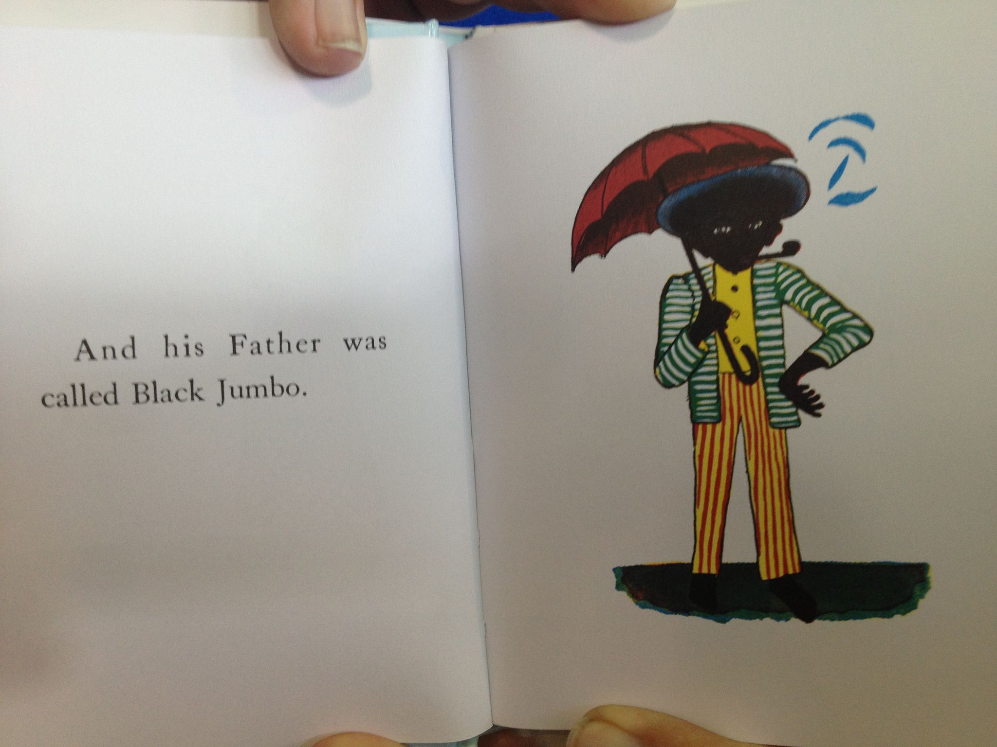 一本童書上寫著「他父親的名字叫做黑色巨物」,有的讀者不滿這本書帶有種族歧視的命名方式。