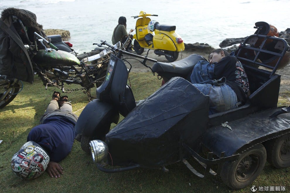 偉士牌機車原來的樣子已經無法想像,照片中的偉士牌還能讓三人坐在一塊地悠閒兜風