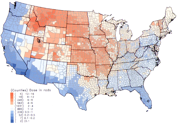 然而,對美國大眾來說,知道原子能委員會的核彈測試會導致放射性落塵並不夠,負責調查美國癌症機構報告的奧特邁爾(Pat Ortmeyer)指出,大多美國人長期暴露於會致癌的放射性物質放射碘(Iodine-131),該物質會透過食物鏈累積在人或動物體內,一旦高濃度的放射碘在甲狀腺累積就會傷害人體組織,進而導致甲狀腺癌。