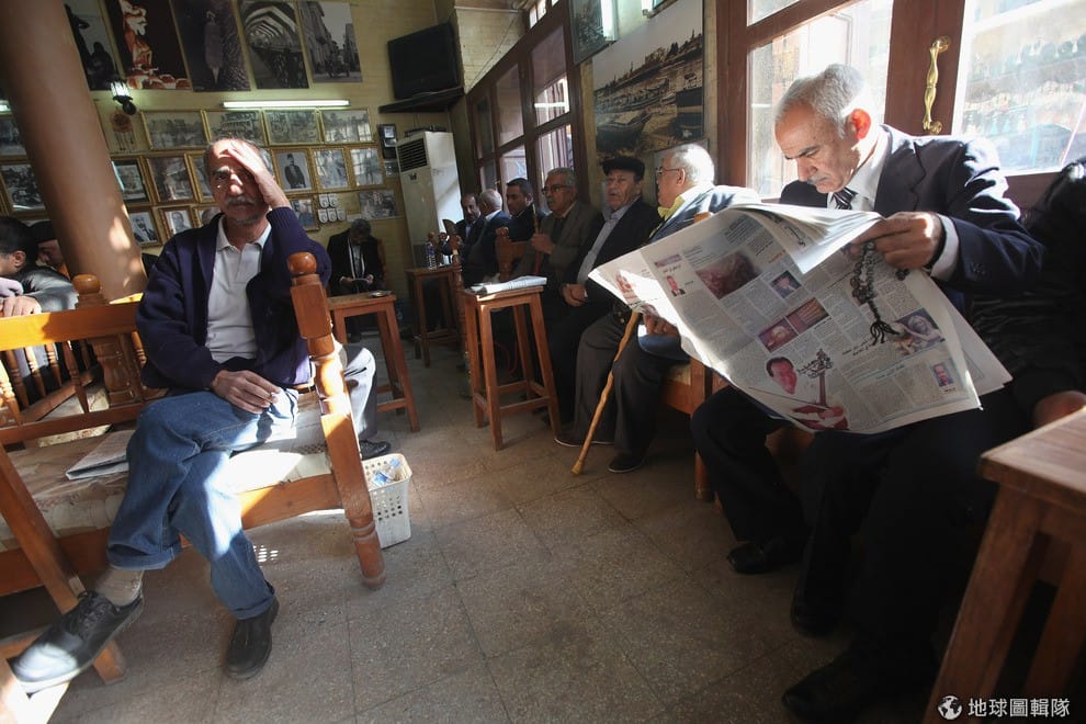 地球圖輯隊由於被攻擊的地點都是有人潮聚集的地點,例如市集、咖啡店,人們在無預警的情況下受到炸彈波及,無辜喪生。照片中是首都巴格達的一家茶屋,居民們正閒適的喝茶看報。。