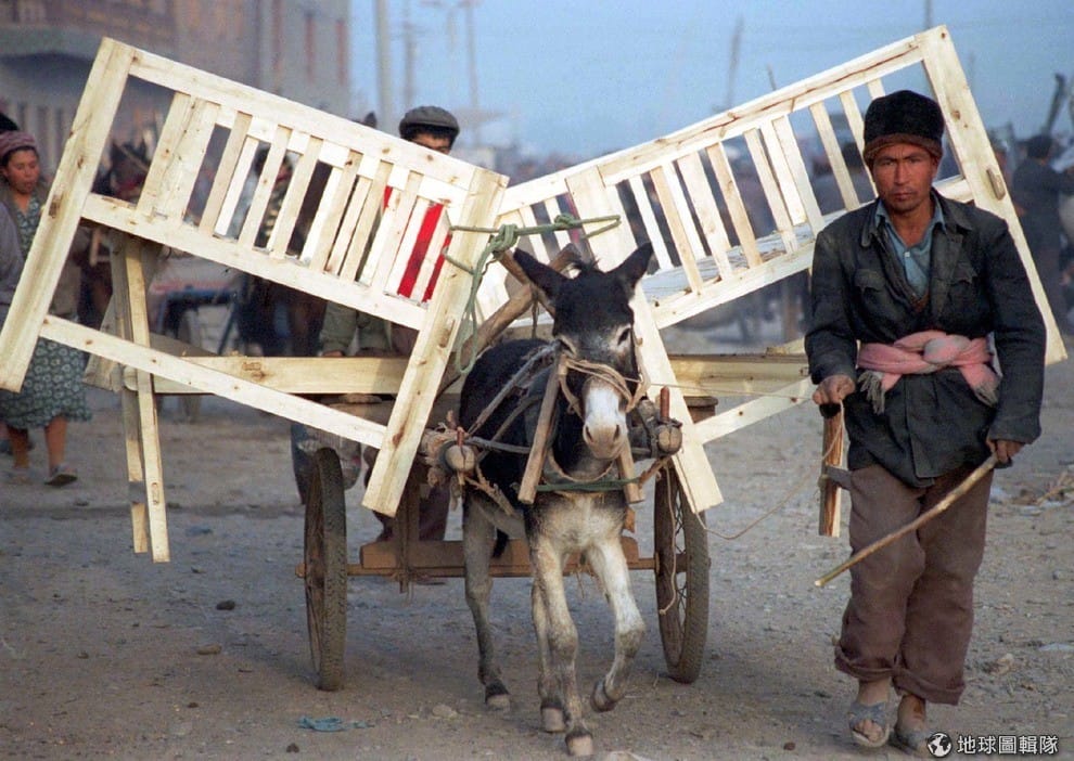 攝影師拍下了帶著自己剛做好的床板,準備前往周日巴扎木匠。