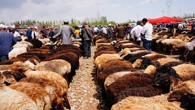 牛羊巴扎仍保存古老的交易方式:不用磅秤與計算機,掰開嘴看看、摸摸屁股,再抱起來掂量一番,是檢查「商品」好壞與否的專業手法。若對品質滿意,便伸出手指講價,一旦談攏,雙方握手、點頭、成交。