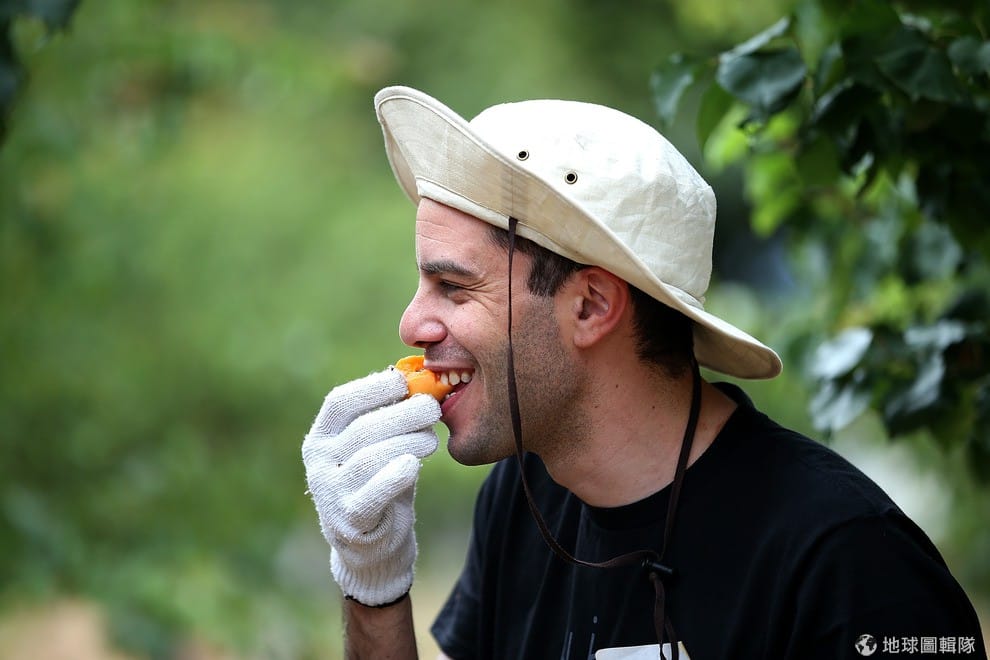 剛採摘下來的杏桃和洋李,要經由志工分類再包裝起來。
