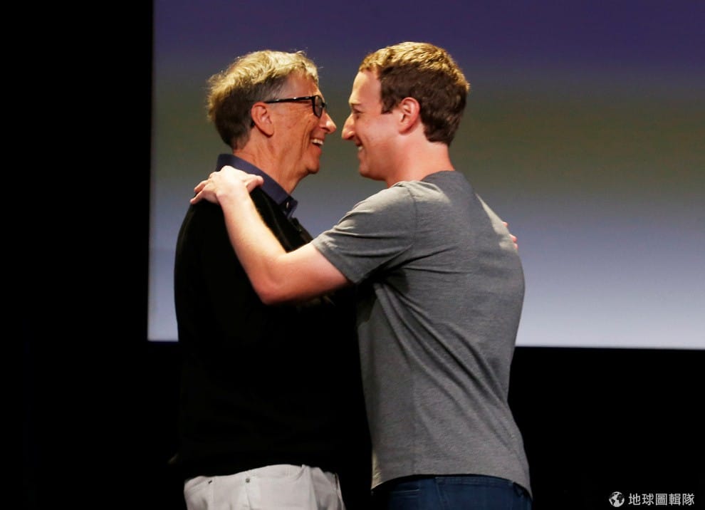 在 2016年9月的記者會結束後,比爾蓋茲(左)和馬克祖克柏(右)在會場互相打招呼。