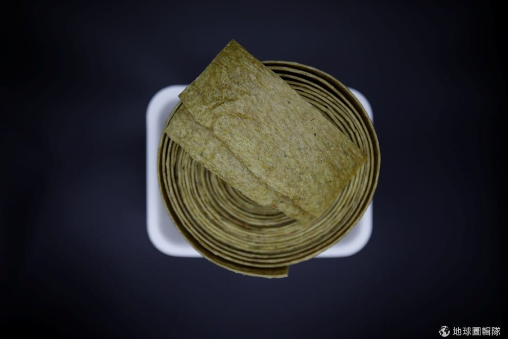 圖中這看起來像一圈紙板的食物,就是拿來當作肉的替代品的北韓人造肉,蛋白質和纖維質都很高,而且熱量還很低。