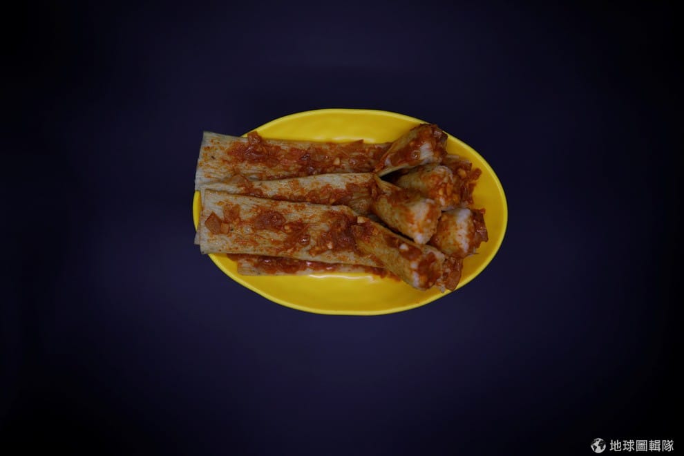 周宇孫另外提到搭配「人造肉」的醬料,他說:「住在海邊的人會用切碎的小魚做醬,住在鄉間的人會用辣椒。我住得離海比較近,所以我用切碎的沙鰻。」