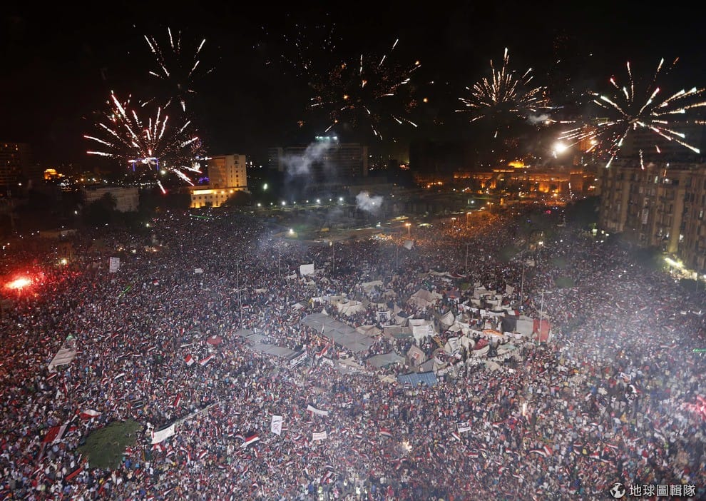 軍方將領塞西宣布穆爾西下台時,解放廣場上的群眾施放煙火大肆慶賀。