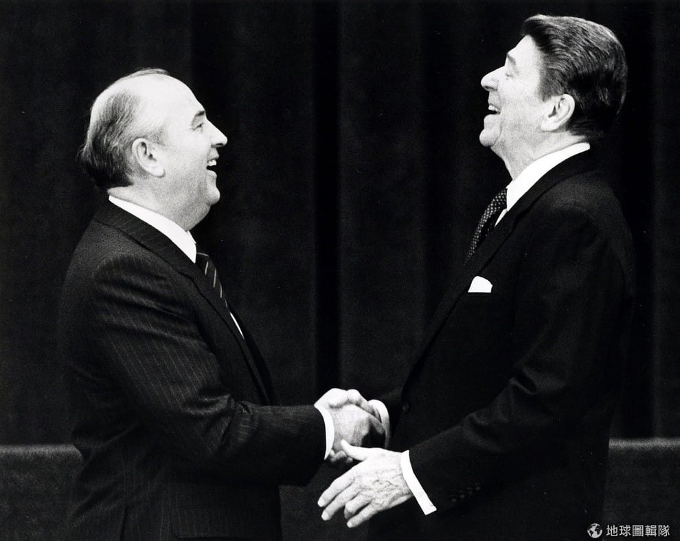 圖為蘇聯最後一任領導人戈巴契夫(Mikhail Gorbachev,左)在 1985年與當時美國總統雷根(Ronald Reagan,右)會面的歷史畫面。六年後蘇聯解體,結束了近 70年的共產政權,也撼動了全世界。