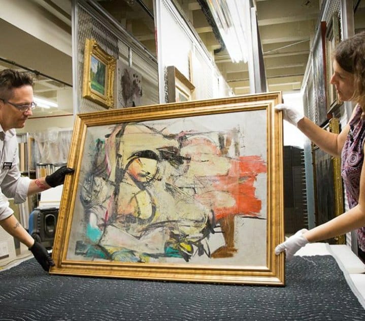 美術館人員正在小心處理手上的畫作,時隔近 32年,這幅畫才終於回到美術館手上。