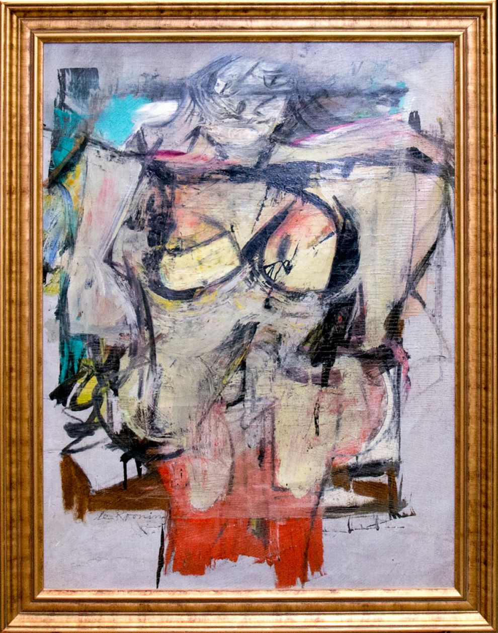 這幅畫作名為《女人赭色》(Woman Ochre),是 1955年、由美國抽象表現主義畫家杜庫寧(Willem de Kooning)創作,該畫作描繪了一名雙手叉腰的裸身女子。這幅畫在 1958年被捐給了亞利桑那州大學美術館,也一直是館內的鎮館之寶。