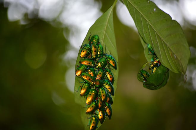 沖繩的森林,是包含七星盾背椿象(Calliphara exellens)在內等許多物種的棲地。這其中也有物種因為棲地喪失或入侵外來種而面臨存續危機。