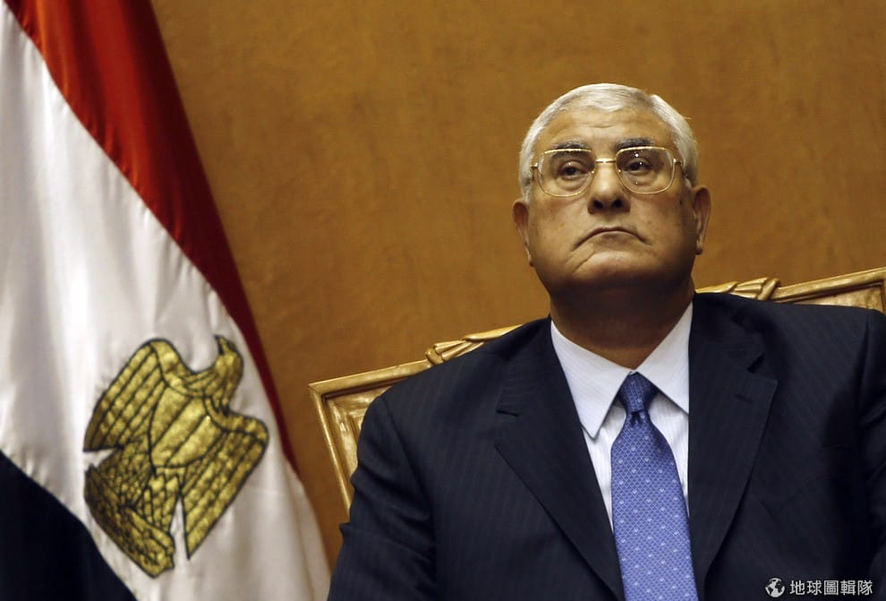 照片中是暫時接管埃及政局的大法官曼蘇爾(Adly Mahmud Mansour)