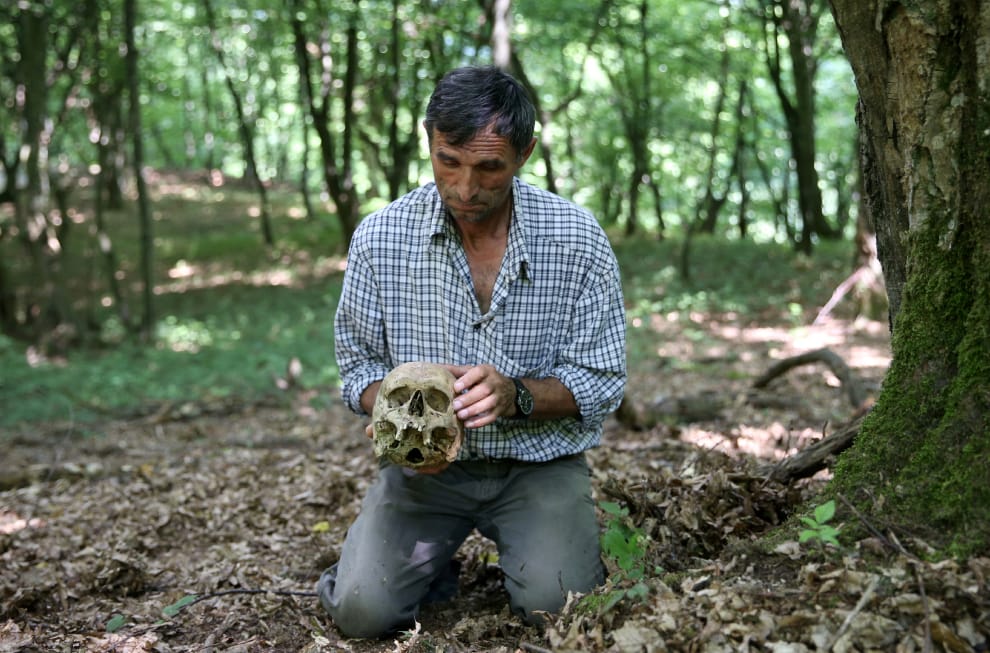 波士尼亞尋骨人努奇克手上拿著在森林中找到的骸骨,他會將這些骸骨好好收集整理,等待MPI人員前來為這些骸骨找到主人。