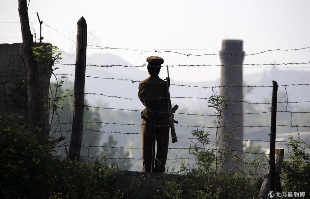 2010年 4月,攝影師拍下了一名在鴨綠江站哨的北韓女兵,這裡緊鄰著中國丹東市的邊境。