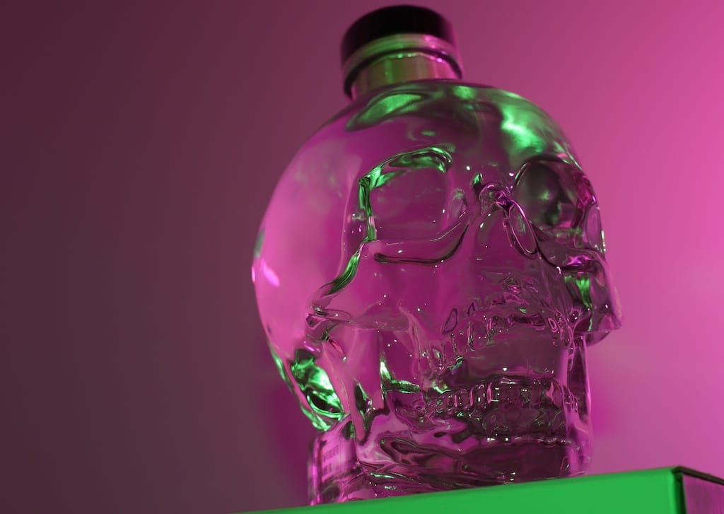 圖為裝著伏特加的骷髏頭酒瓶。不同酒類能帶給人不一樣的情緒,而烈酒通常會讓人情緒波動較大。