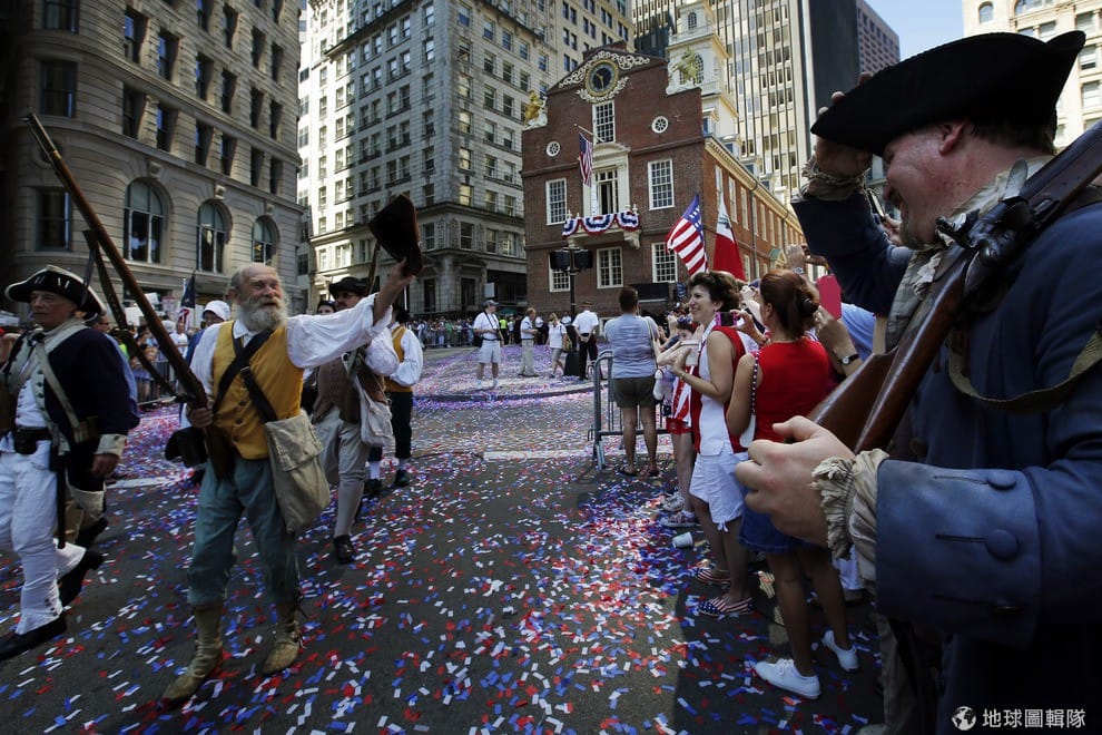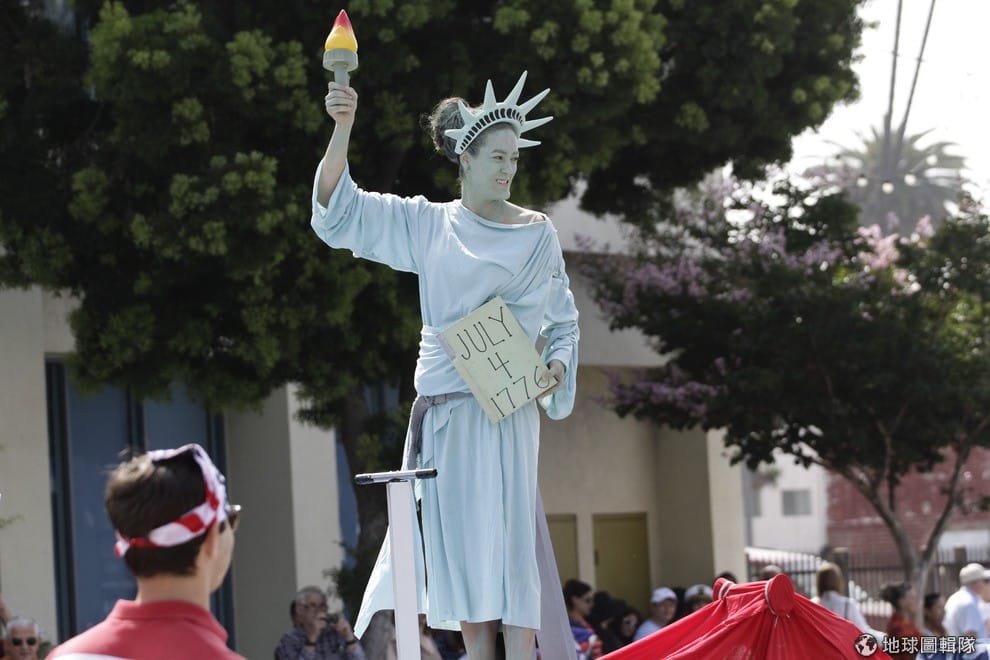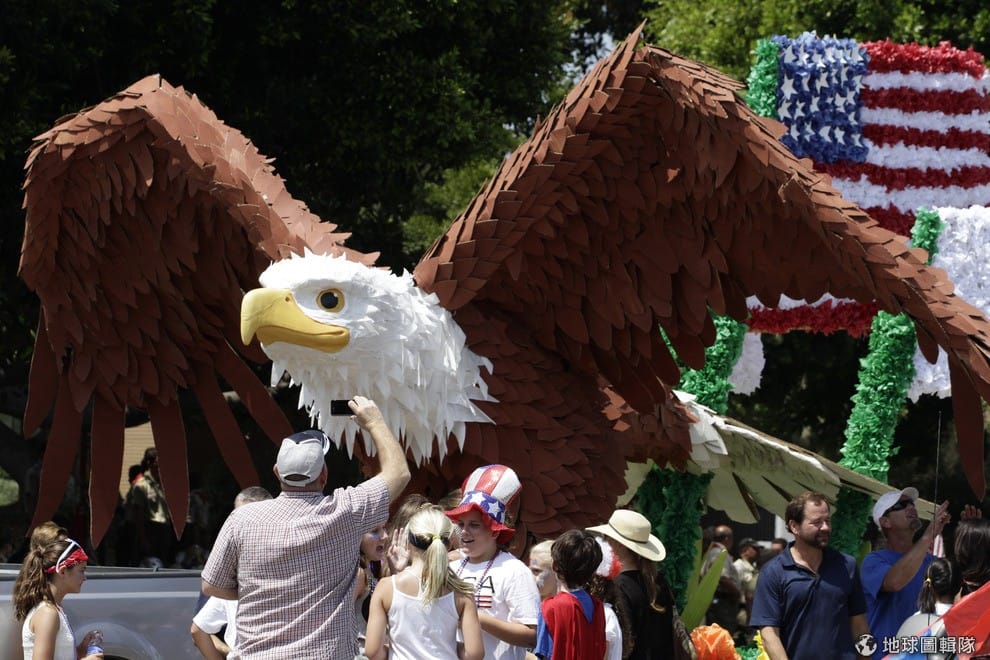 路透社象徵著美國的巨鷹威風的站上遊行花車。