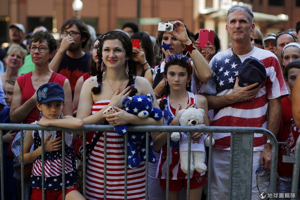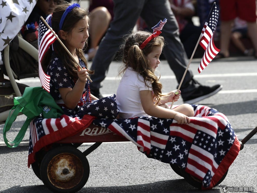 路透社小朋友也把美國星條旗穿到身上。