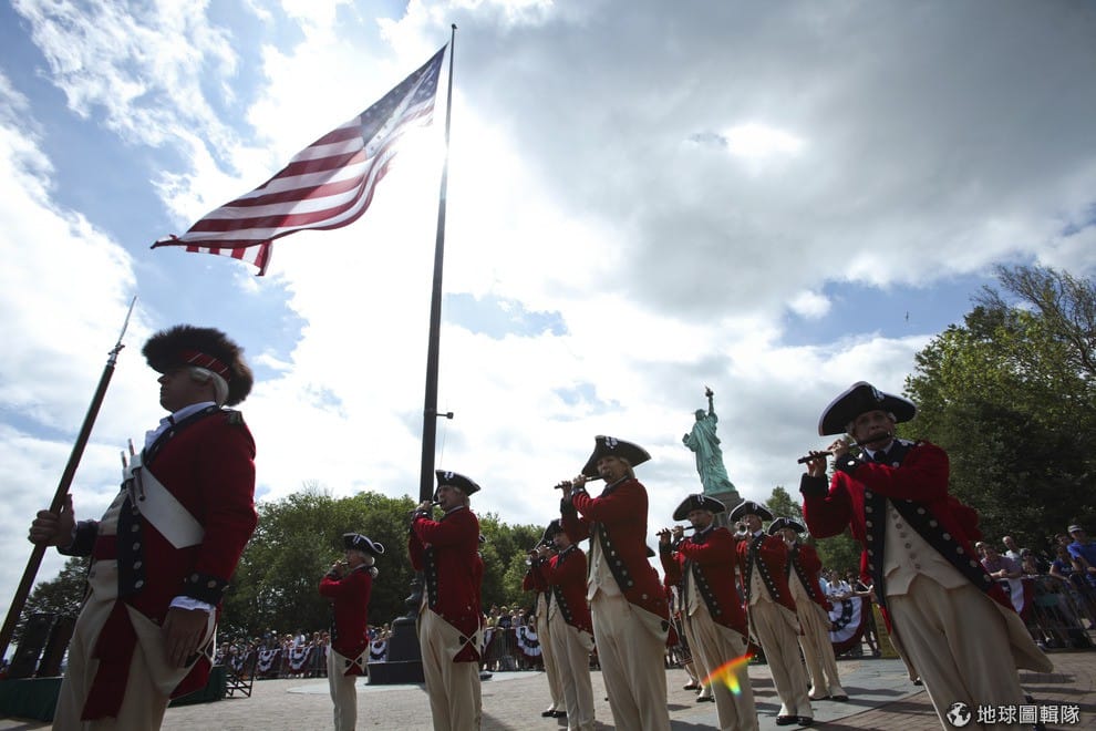 美國步兵團在自由女神的重啟典禮上表演。