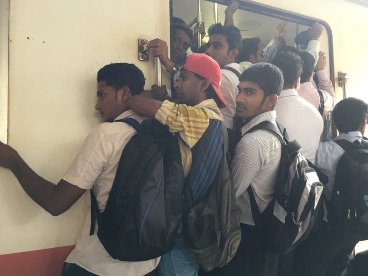圖片上火車已經滿出來了,說是沙丁魚列車一點也不為過,不要懷疑,火車還是照樣開。他們似乎有一套穩抓的訣竅,還沒有看過有人因為這樣出意外,記得那時我大概擠了好幾次才搭上第三班車。絕對不要猶豫,不然你就會被拋在後面,永遠擠不上搶手的車門。