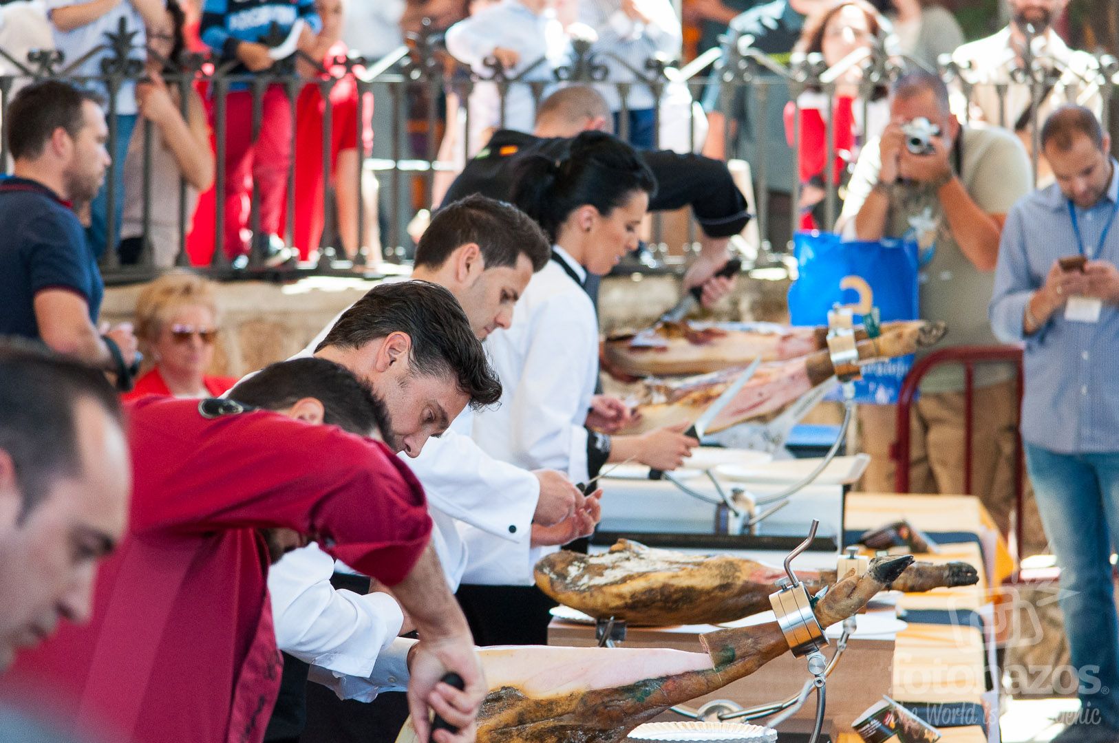 在西班牙專門製造伊比利亞火腿的區域,像是埃斯特雷馬杜拉(Extremadura)、卡斯提亞-雷昂(Castilla y León)和安達魯西亞(Andalucía)都有舉辦切火腿比賽,往往吸引上百名遊客前往觀賞。