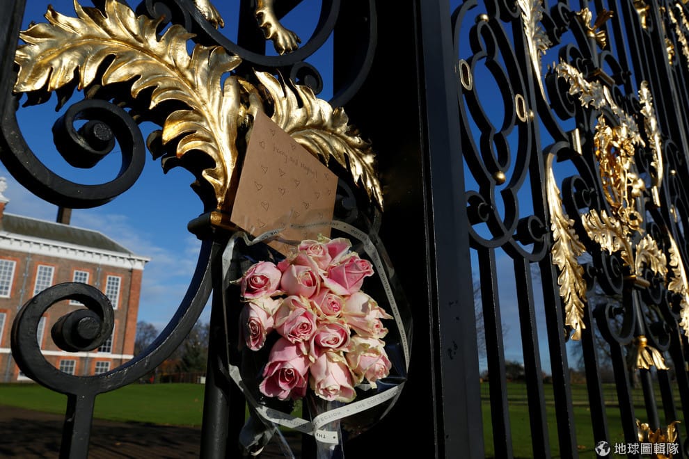 一張畫滿愛心的卡片與花束被擺在肯辛頓宮門外,上頭註明要送給哈利王子與未婚妻梅根。