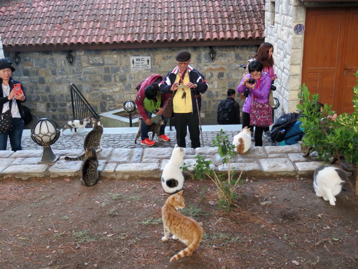 遊客到以弗所古城遺址,還沒開始參觀古蹟就先拍貓。