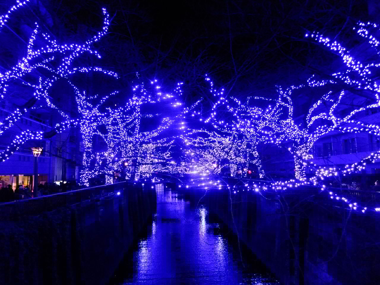 網友Aw1805時間來到 2014年12月,櫻花被LED燈取代,塑造出另一種美感。