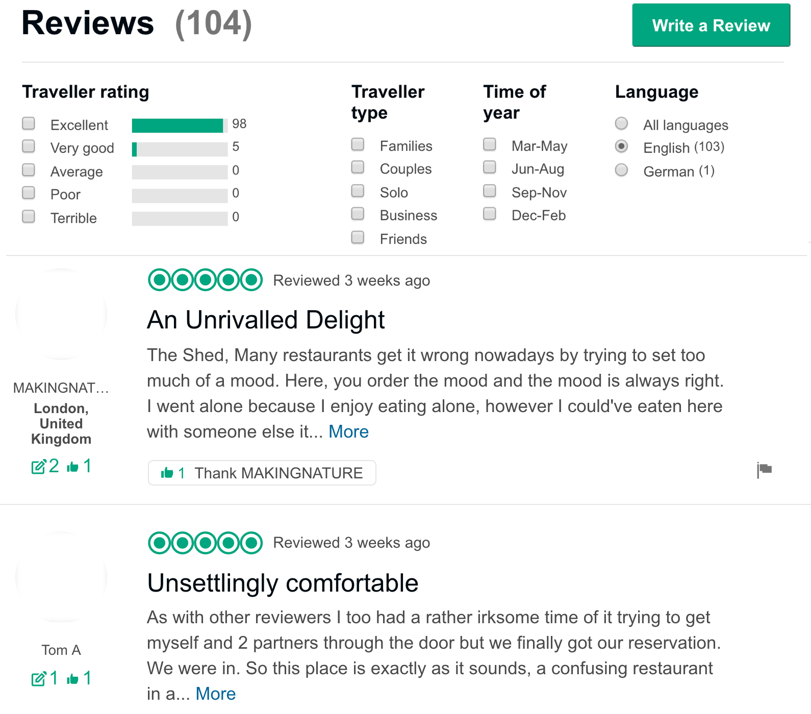 雖然「杜維琪的棚子」已經被TripAdvisor下架了,但是大家還可以從頁庫存檔中找到相關頁面,上頭也能找到巴特勒一行人留下的各種假評論。