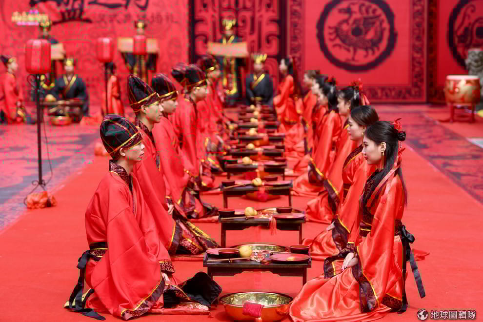 今年八月,中國新人們為了慶祝七夕,聚在一起舉辦帶有漢代風味的集團婚禮,現場散發著濃濃的中國味。