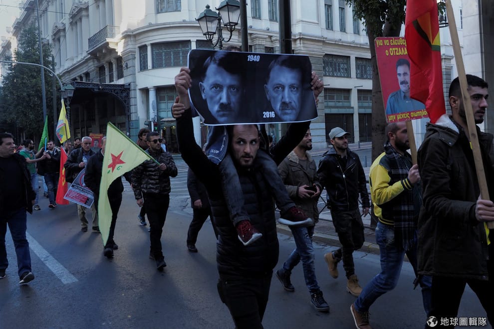 另一方面,也有許多人在 7號走上街頭,抗議埃爾多安在國內打壓異己的舉動,希臘也因此出動上千名警力維安。
