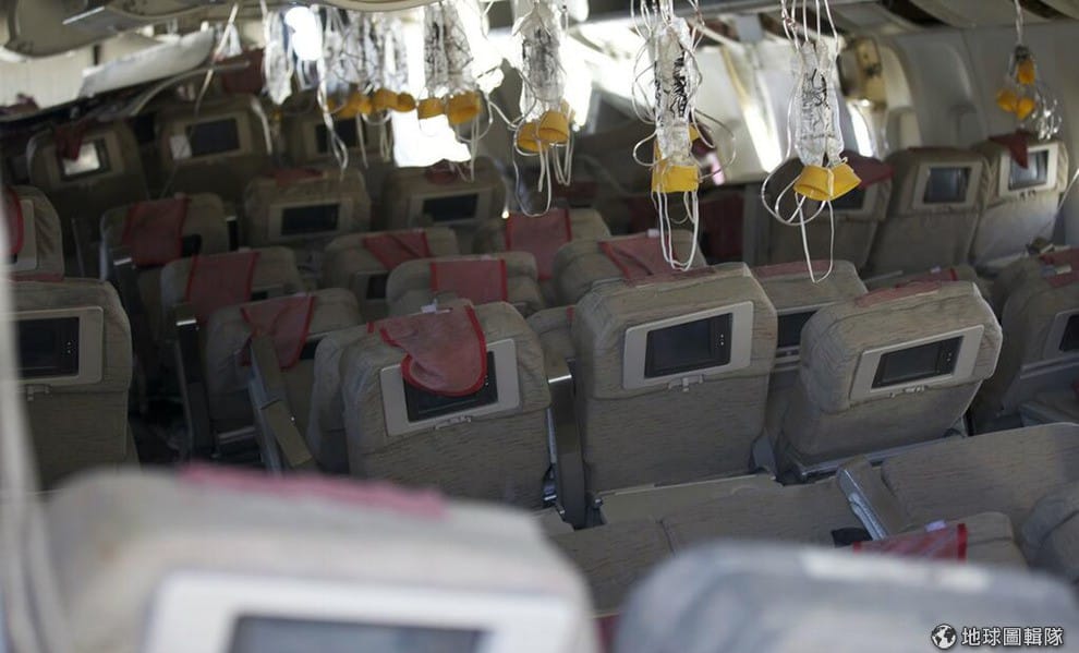 照片中的NTSB人員正對著韓亞航空毀壞的機尾拍照存證