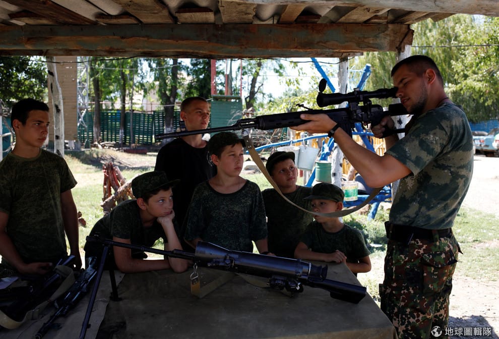 路透社在「俄國武士」夏令營中,教官們正在教學生如何使用武器。