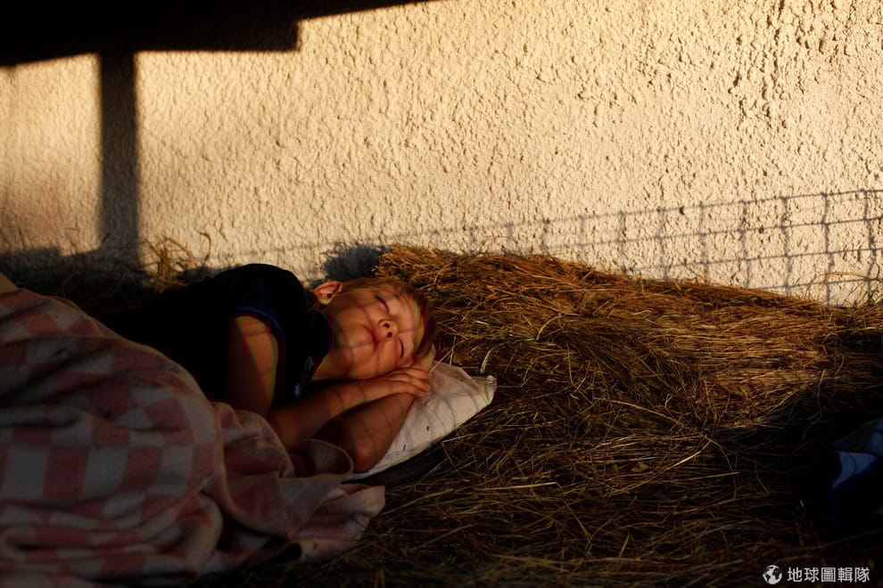 路透社天剛濛濛亮時,睡在稻草堆上、參加「俄國武士」夏令營的學生就準備要起床了。