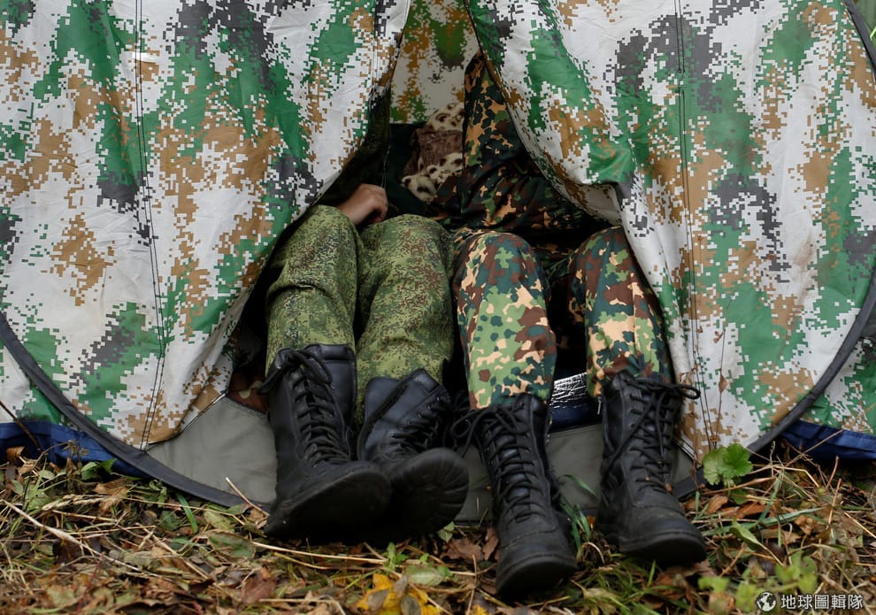 路透社當夜幕降臨,所有學生得想辦法搭好迷彩帳篷,才不用餐風露宿。